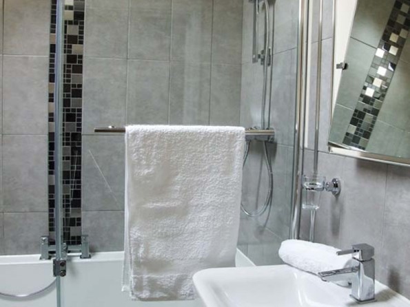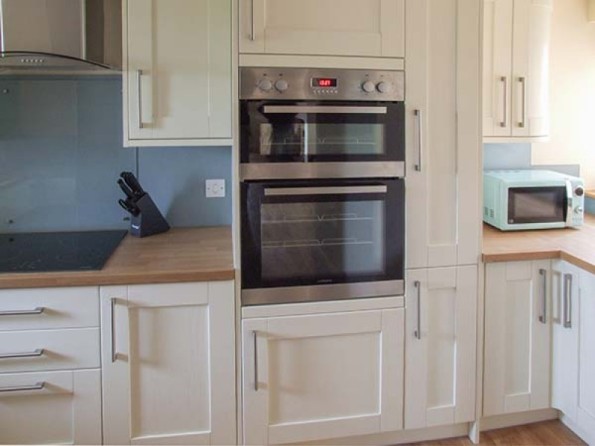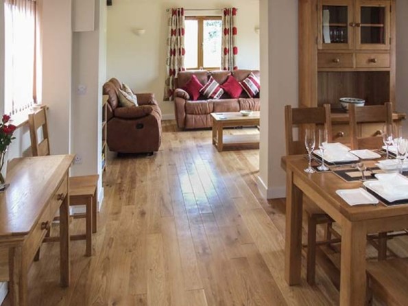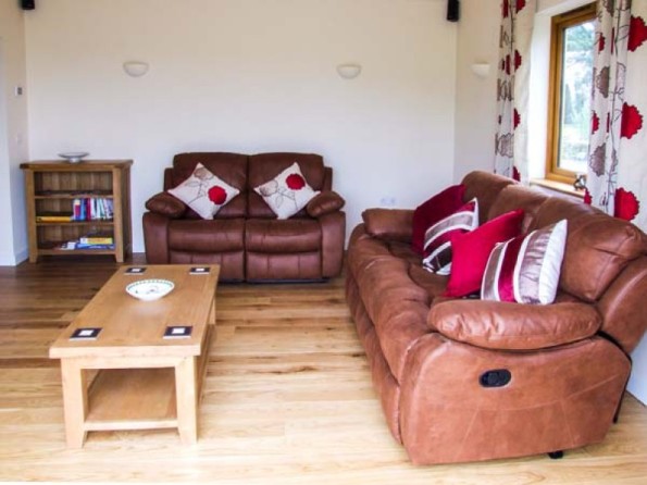 Two bedrooms with TV: 1 x double with en-suite bath, shower over, basin and WC, 1 x twin with en-suite shower, basin and WC. Ground floor basin and WC. Open plan living area with kitchen, dining area and sitting area with gas stove.