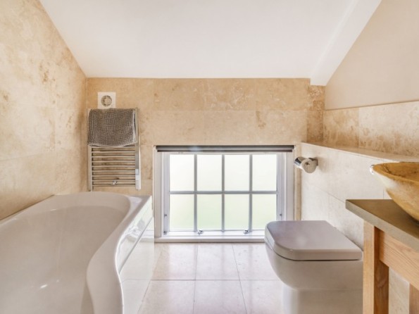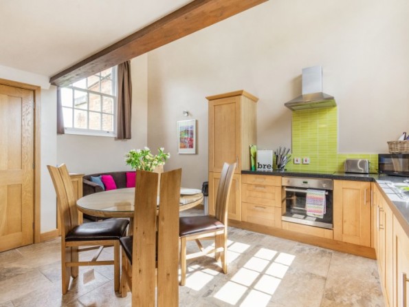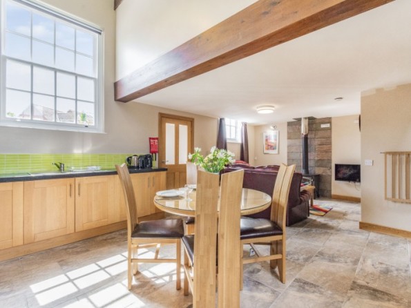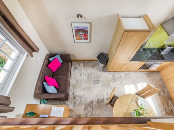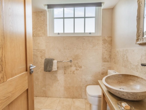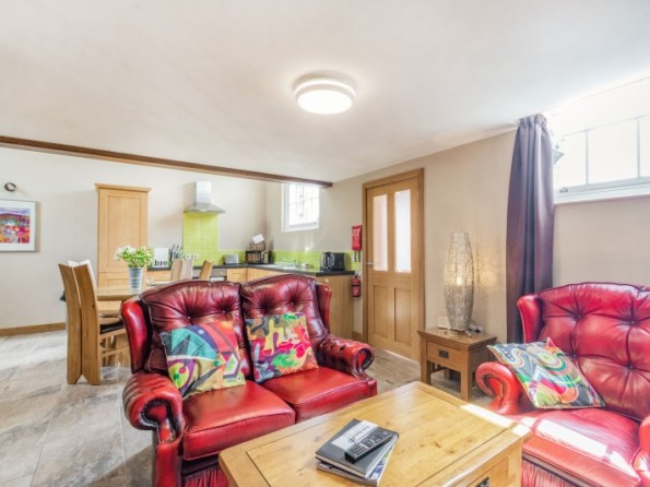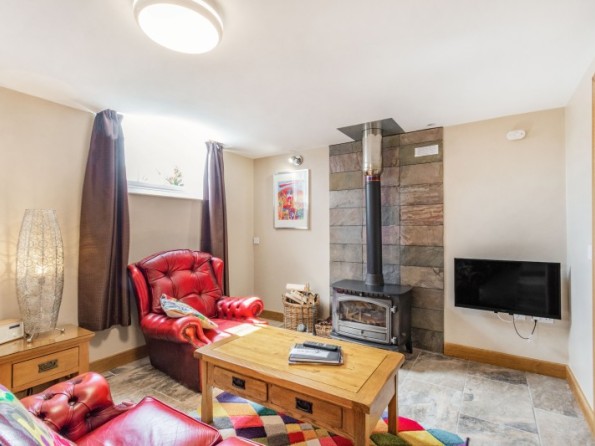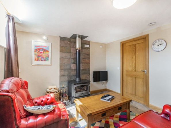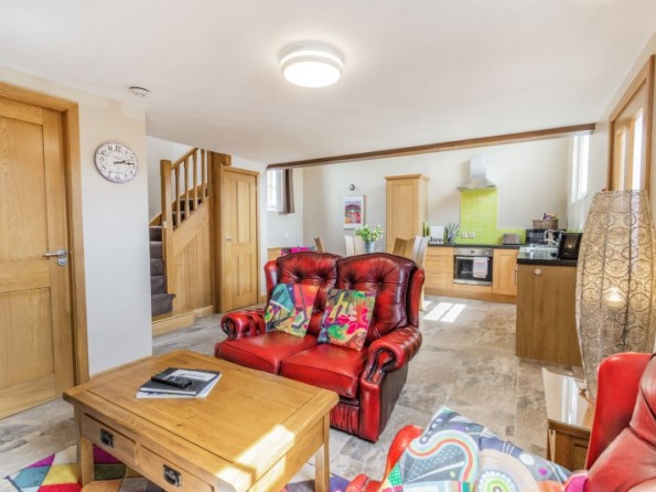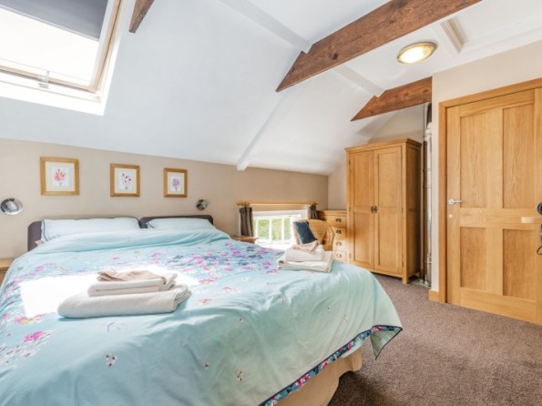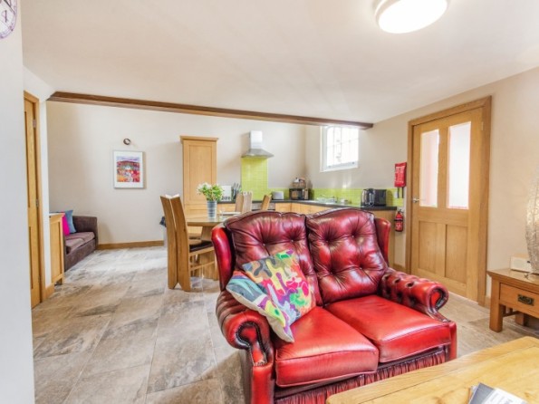 One king-size double bedroom (zip-link, can be twin with 2'6'' beds on request) with en-suite bath, shower over, basin and WC. Ground floor wet room with shower, basin and WC. Open plan living area with kitchen, dining area and sitting area with sofa bed and woodburning stove.