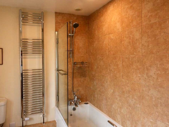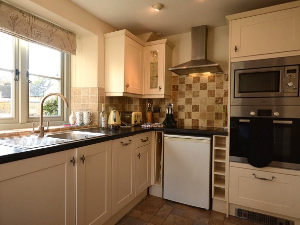 The cottage has been beautifully restored to give a contemporary feel whilst retaining many of its period features. Downstairs is a cosy sitting room with a comfy sofa where you can curl up with a good book or watch a film. The kitchen is to the side and is well equipped with the usual appliances plus microwave, dishwasher and washing machine. There’s a dining table for two sitting under the window looking out into the garden. Stairs from the living room lead up to the bedroom with its ensuite bathroom. There’s an iron framed double bed, and the bathroom has a bath with a shower over. Gas fired central heating throughout.