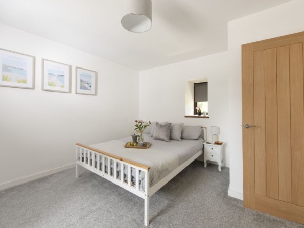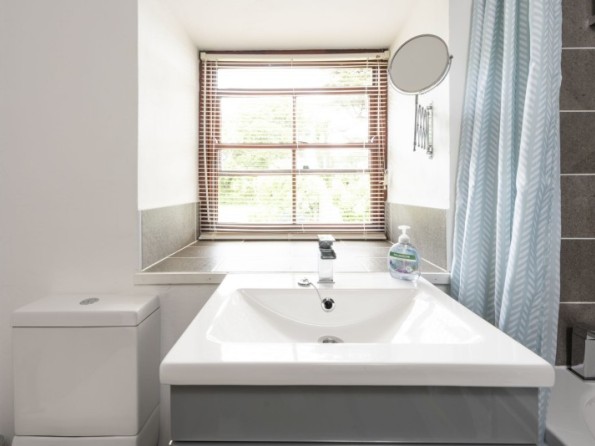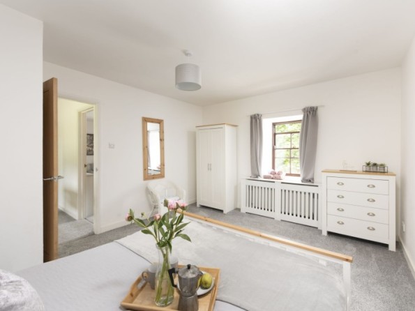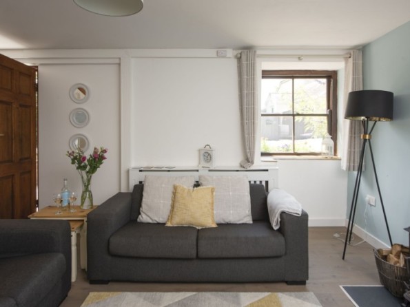 Inside, guests will discover a stylish and airy open plan living area complete with two contemporary sofas and a traditional wood burning stove, the perfect place for relaxing in after an activity-filled day; while a fully fitted kitchen is ideal for rustling up delicious dinners and (for those more adventurous cooks) a few home-baked treats. Incorporated into the space on this floor, a convivial dining area creates an inviting place to share meals and conversation, while outside the enclosed private garden tempts morning coffees and alfresco dinners in the sunshine.