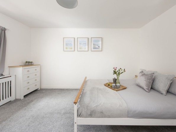 This upstairs bedroom is large and welcoming and features a king size bed with high quality memory topped mattresses, a large wardrobe, bedside tables, bedside lamps, a mirror and hairdryer