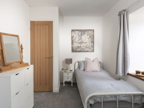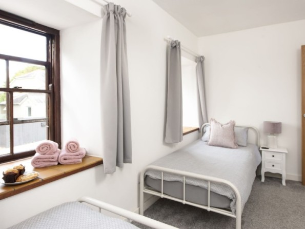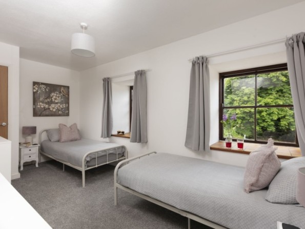 Also upstairs this bedroom has two single beds with high quality memory topped mattresses, a chest of drawers, a mirror, bedside tables and lamps