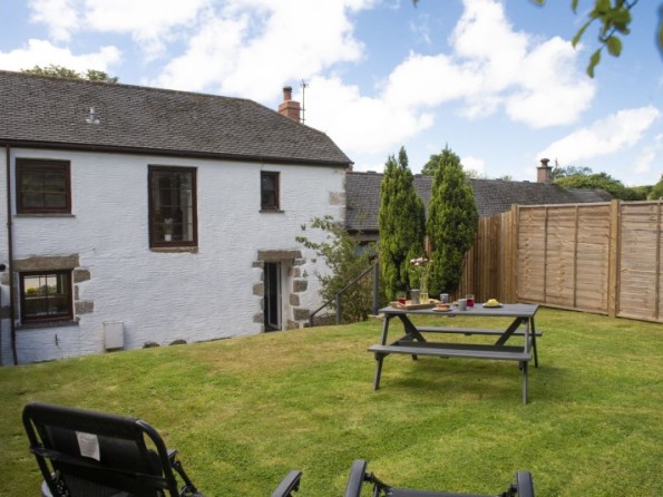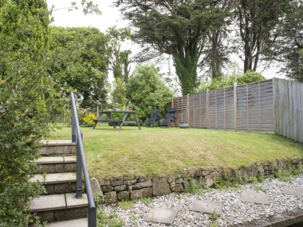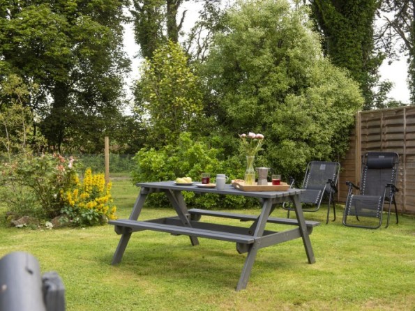 The private garden is spacious and enclosed and features a picnic bench for outdoor dining as well as a fire bowl and sun loungers