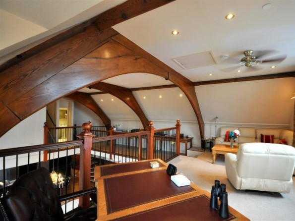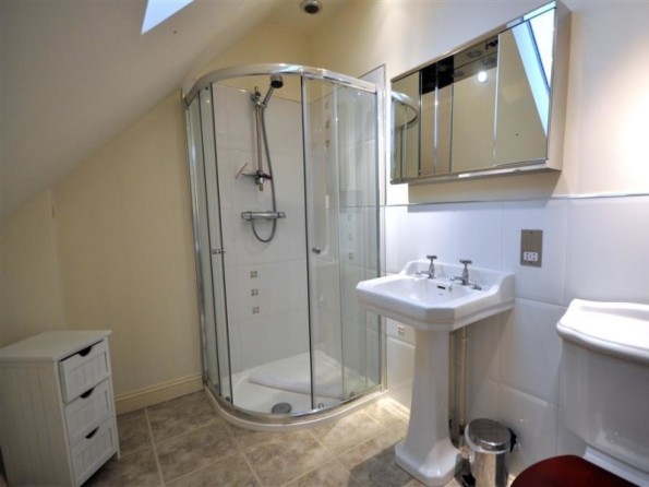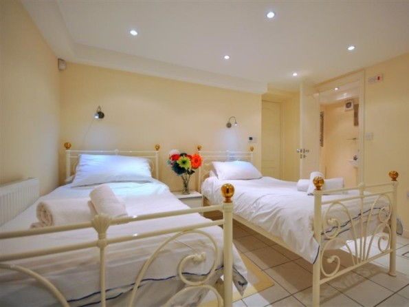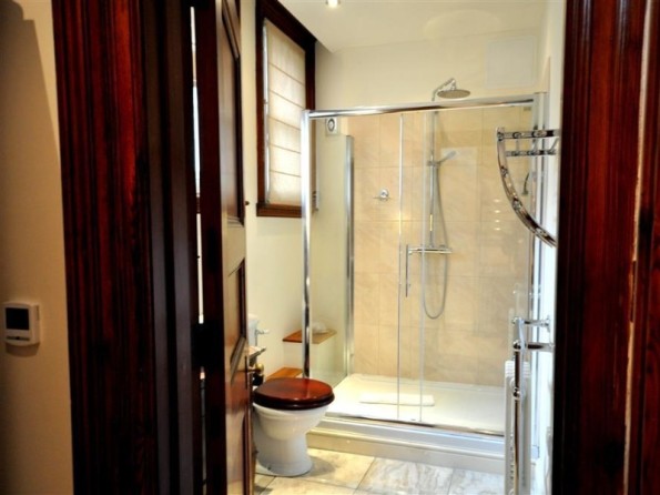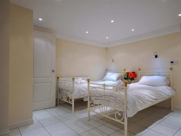 Over three floors. Four bedrooms: 1 x ground floor king-size four poster double with en-suite shower, basin and WC, 1 x ground floor twin single with en-suite shower, basin and WC, 1 x double with en-suite shower, basin and WC, 1 x double. Shower room, basin and WC. Ground floor cloakroom with basin and WC. Open plan living area with kitchen with breakfast bar, dining area, sitting area, first floor sitting area. Ground floor utility room accessed via twin single bedroom.
