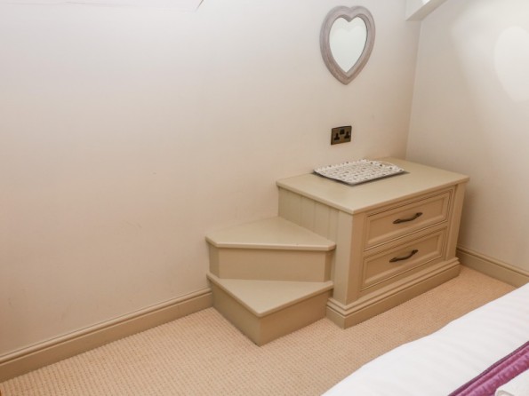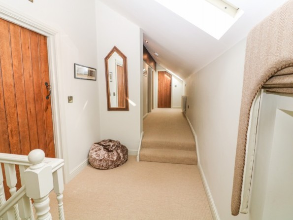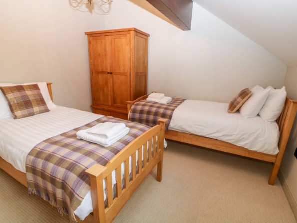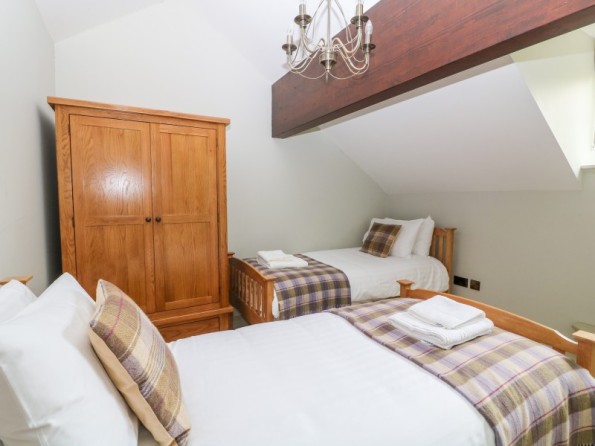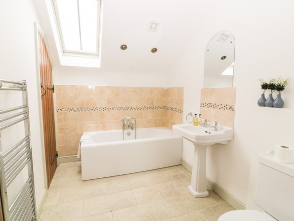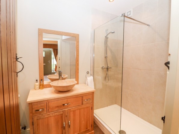 Four bedrooms (two with TV): 3 x king-size double (one with dressing room and en-suite bath, hand-held shower, basin and WC), 1 x twin. Bathroom with bath, hand-held shower, basin and WC. Ground floor basin and WC. Kitchen with dining area. Sitting room.