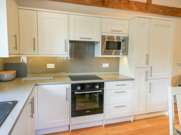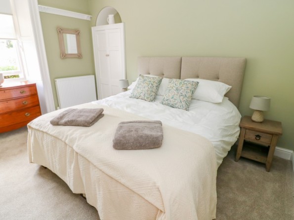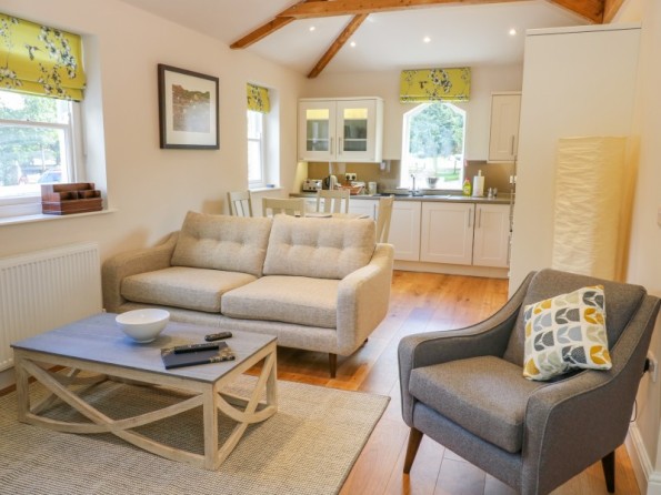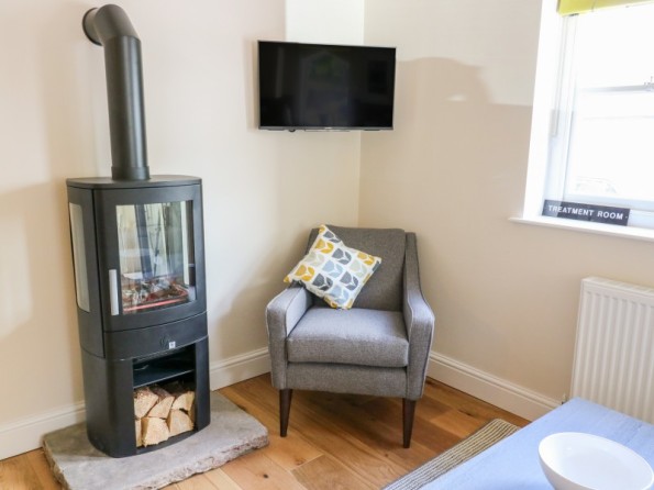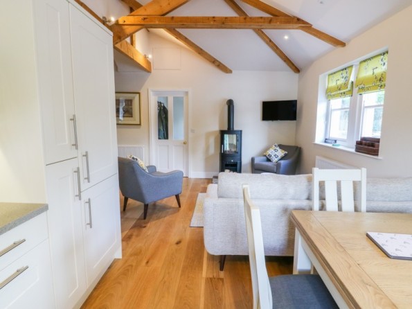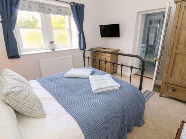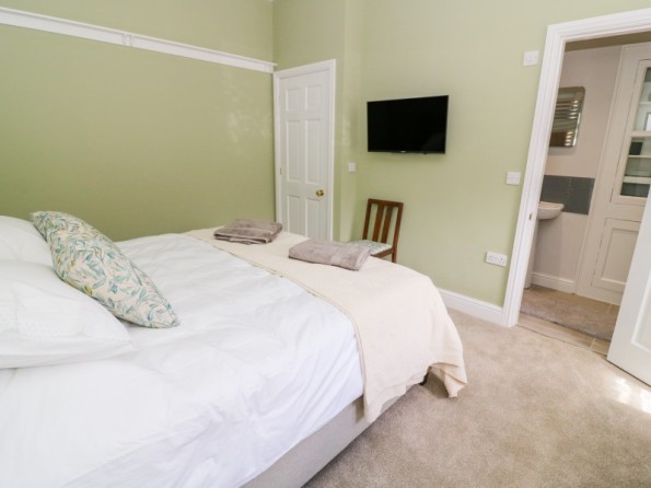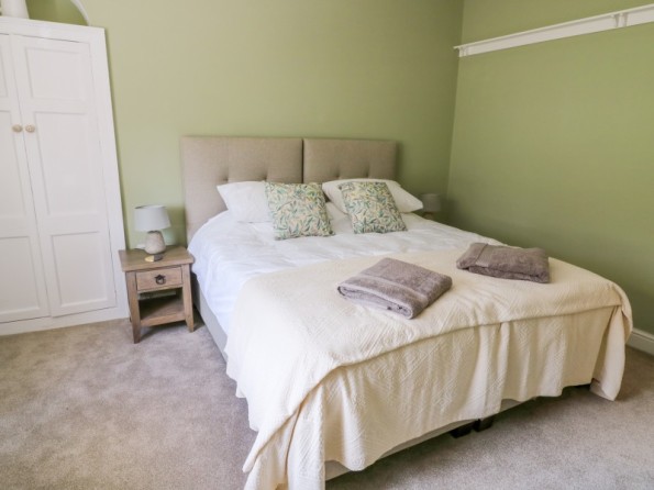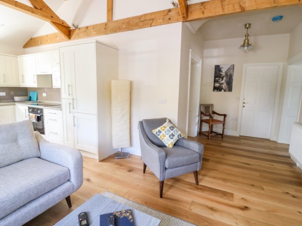 All ground floor apartment. Two bedrooms: 1 x super king-size double (can be made into a twin on request) with en-suite shower room, 1 x king-size double with en-suite shower room. Open-plan living area with kitchen, dining area and sitting area with woodburning stove.