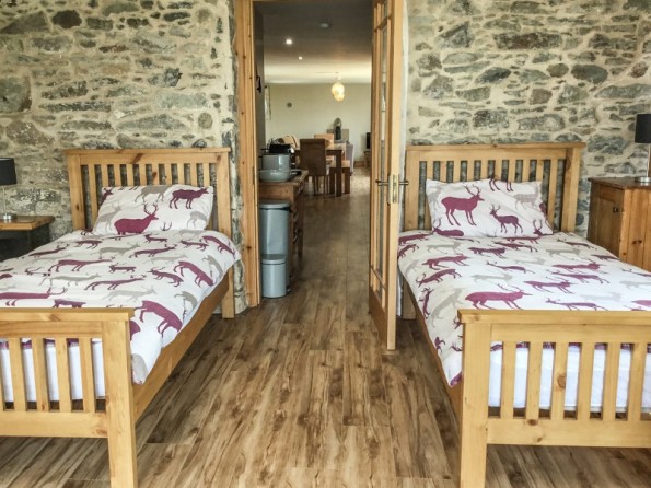 Three bedrooms: 2 x double, one with en-suite shower, basin and WC, 1 x ground floor twin. Bathroom with bath, separate shower, basin and WC.
