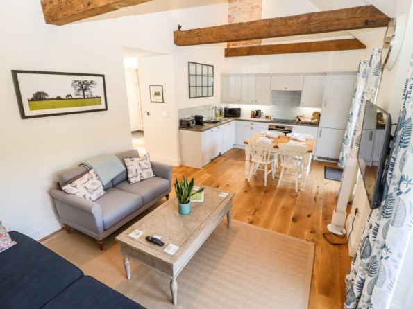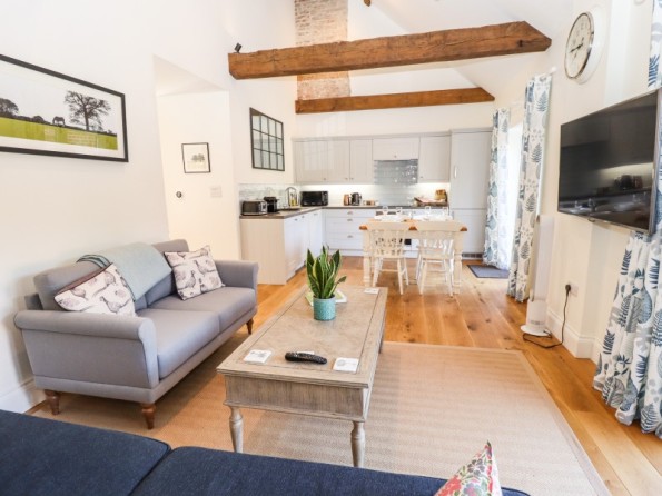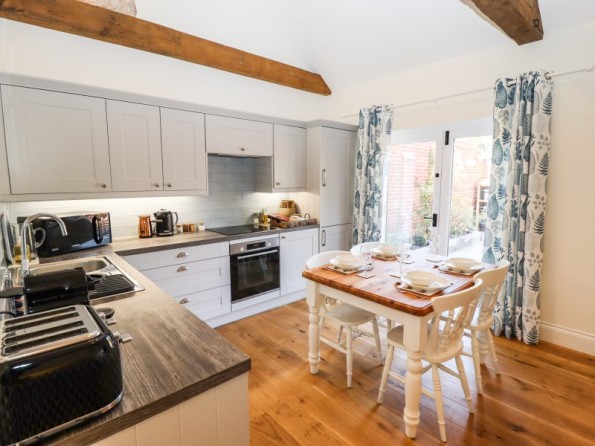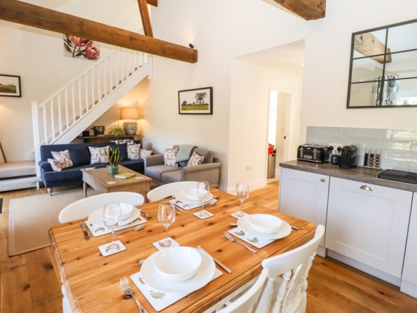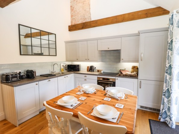 The living areas in the renovated, semi-detached barn conversion consist of an open-plan living space with a kitchen hosting an electric oven and induction hob, fridge/freezer, dishwasher, coffee machine, hot chocolate machine, a dining area with seating for four people, a sitting area with a TV, and a cloakroom/utility with a washing machine. The bedrooms consist of a ground-floor king-size with an en-suite bathroom, and a king-size with an en-suite bathroom. Outside, there is an enclosed patio with a barbecue and furniture, along with parking for two cars. Within 1.5 miles, you will find a shop, within 2.7, a café, and within 2.3, a pub. Please note that this is a pet-free and smoke-free property. WiFi, fuel, power, bed linen, towels, a hairdryer and cooling tower are all included in the cost. Choose The Smithy for a marvellous break to remember. Note: Check-in is from 4pm, check-out by 10am. Note: The washing machine is in the utility. Note: Luxury bath/shower products are also provided.