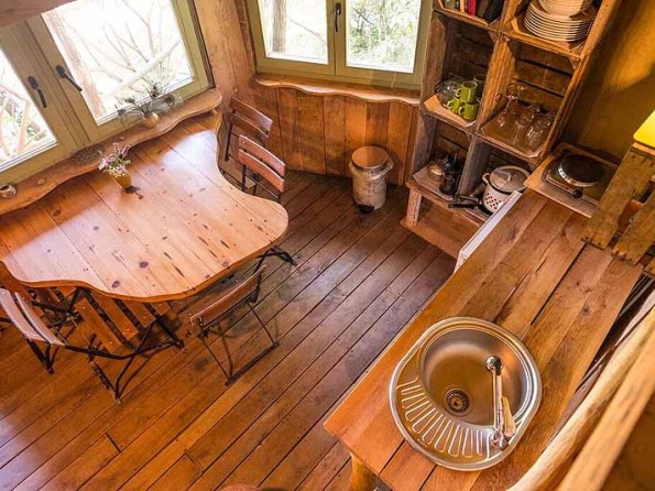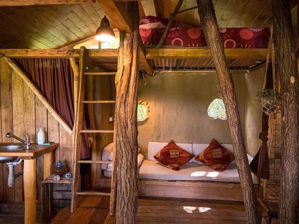 Treehouse living is the stuff of fairytales and this is no exception. The accommodation can sleep up to five people in comfortable beds, and you will also find a living space, a kitchenette, a bathroom and a dry toilet. Organic vegetables from the garden are available for self-catering (either for free or for a fair price).