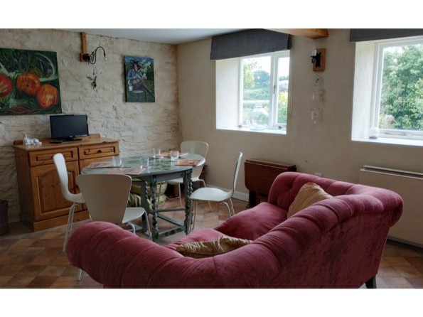 The cottage has two bedrooms - one king and one double with an additional single - as well as a workspace, a shower room and a living space with a kitchen, a sofa and a dining table and chairs. Quirky and colourful artwork throughout gives the cottage unique charm and personality.