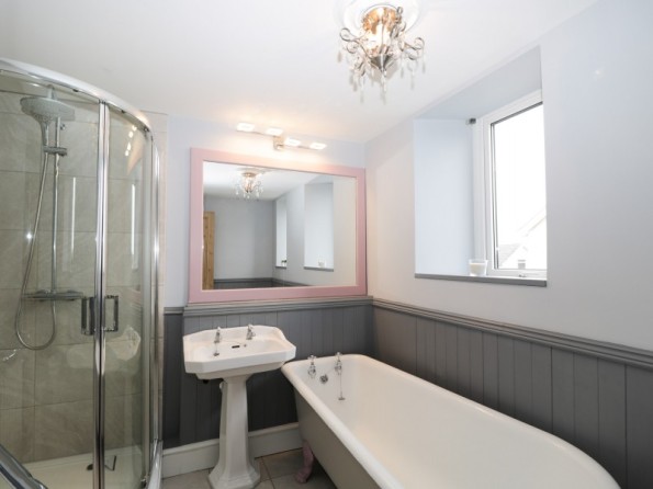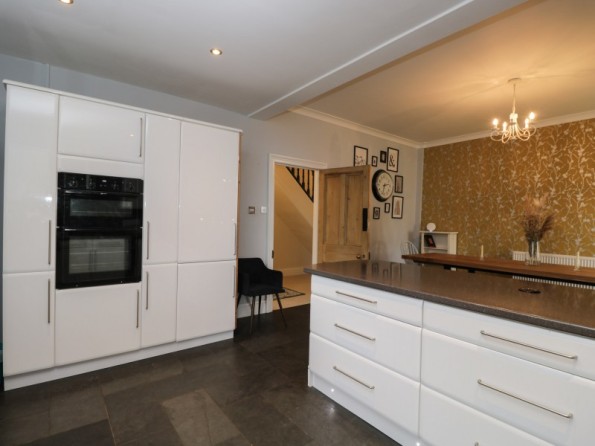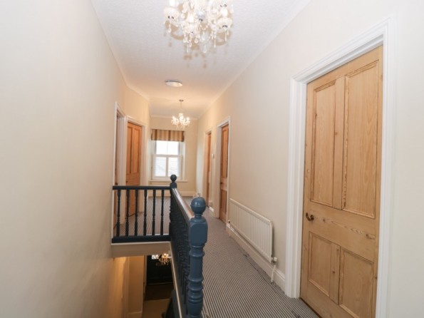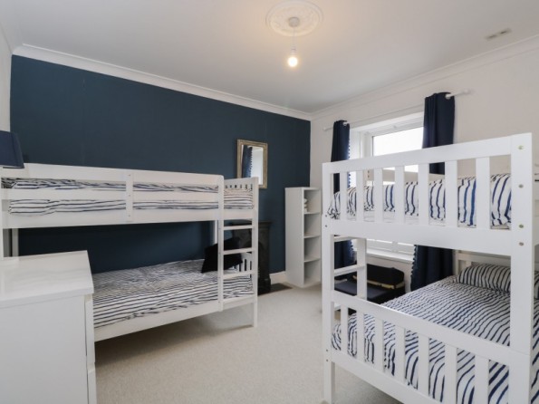 Five bedrooms: 1 x king-size with en-suite walk-in shower, basin and WC, 1 x king-size with walk-in wardrobe, 1 x double with additional sofa bed, 1 x double, 1 x quadruple bunkroom. Bathroom with bath, walk-in shower, basin and WC. Ground-floor shower room with walk-in shower, basin and WC. Kitchen/diner. Utility. Sitting room. Sitting room with woodburning stove