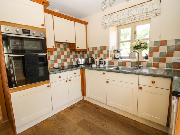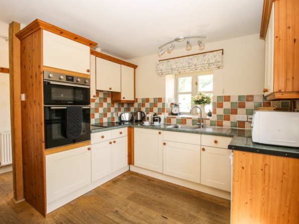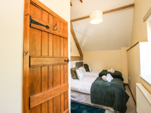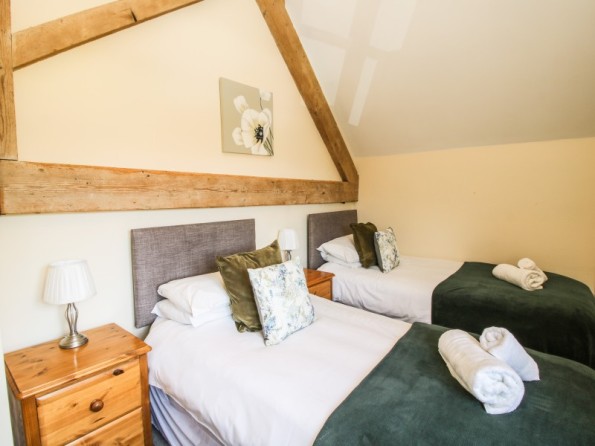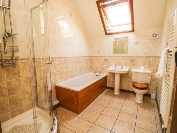 Three bedrooms: 1 x ground floor king-size double with en-suite (separate shower, basin and WC), 1 x first floor double, 1 x first floor super king double zip and link (twin on request). Bathroom with bath, separate shower, basin and WC. Fitted kitchen with dining area. Sitting room. Shared games room and gym with TV.
