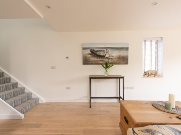 Upstairs, three inviting bedrooms offer guests their own sanctuaries to retreat to after days spent unwinding on the beach. Light-filled and airy, all have comfortable beds, crisp linen and built-in wardrobes with the master bedroom boasting its own fabulous balcony and en-suite shower room. Tucked into the countryside but within just a few minutes drive of some of North Cornwall’s best surfing and dog walking beaches, this home is 5 minutes from the golden sands of Holywell Bay and 10 from Crantock Beach in Newquay.