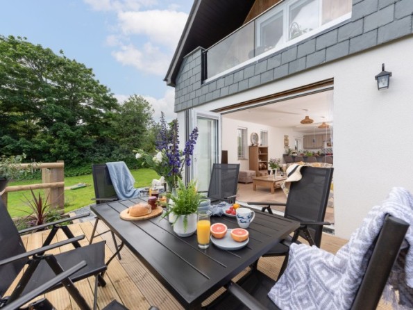 Newly renovated and tastefully furnished, The Willows has been proportioned to provide guests with space to spend time together in and room to be alone. A large open plan living room with its gorgeous dining space and contemporary kitchen design make up the convivial heart of the home's ground floor, while bifold doors extend the space outside to the raised deck which has sprawling countryside views. This is the perfect place for fresh air dining, or if you fancy lounging back with an evening G&T then the lower paved patio with rattan suite is the place for it. Especially ideal for parents who wish to relax in the sunshine while their children run free on the lawn, both outside spaces enjoy the sun’s rays all day, so when you’re not out exploring the area, you can grab a book and put your feet up while the kids let off some steam.