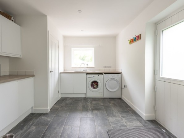 The large separate utility room houses the washing machine, tumble dryer, iron / ironing board and vacuum cleaner and doubles as a boot room for coats, walking shoes and dog leads