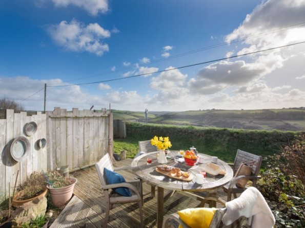 The mature wraparound garden features a combination of lawn, shrubs, beds and decorative stone. The decked terrace which is accessed via the dining room is furnished with an outdoor dining table and four chairs and has lovely views over the surrounding countryside