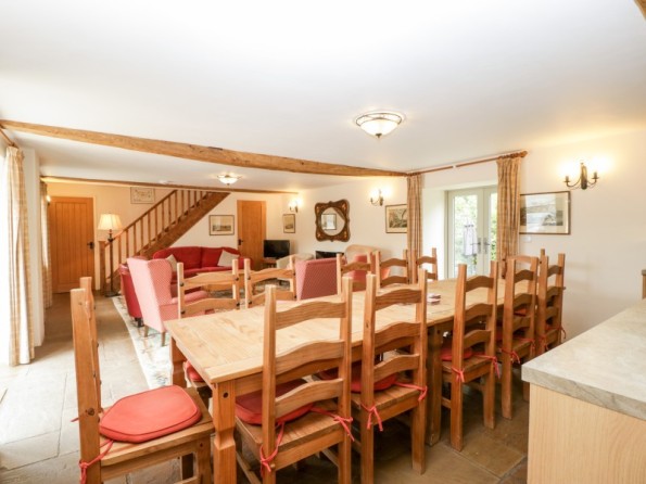 Timber Barn is a tremendous barn conversion located in the village Eardisland in Herefordshire. It has six bedrooms made up of a super king-size, a twin zip/link and two twins all with en-suites, there is also a king-size as well as a family bathroom and a cloakroom, the property can sleep twelve people. Also inside there is an open-plan living area with a kitchen, a dining area and a sitting area with an electric fire, there is also another kitchen, a utility and a living/dining room. To the outside there is plenty of off road parking. Timber Barn is an incredible barn in a wonderful location.