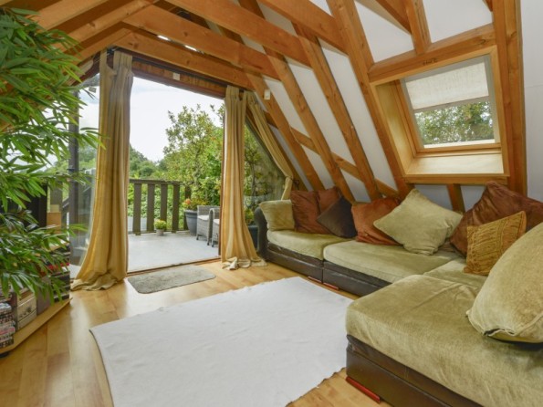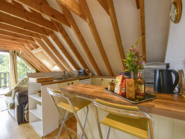 The Studio is a first floor detached property in Stoke Trister, Somerset which overlooks the unique Blackmoore Vale. It has a flight of wooden steps that lead up to a balcony and through a set of glass doors to an open plan living room and fitted kitchen with a built in breakfast bar. It has one king-size bedroom with a separate shower room. Outside is a balcony with furniture provided and shared use of the owner’s garden and barbecue. Parking is available near the property. The Studio is the ideal secluded property for a romantic holiday.