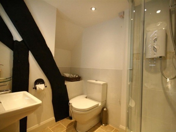 Three bedrooms: 1 x King size double bed (5ft), flatscreen TV, ensuite shower room with shower, WC and washbasin, 1 x double bed (4ft 6in), 1 x twin.