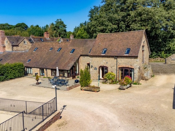 Superb barn conversion in idyllic rural setting. Private woodland walks, fishing, tennis court, games room, children's play area. Exposed beams, woodburner. Church Stretton 7 miles.
