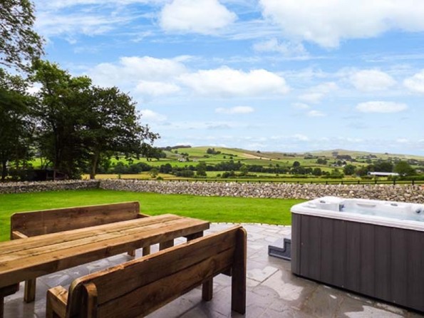 Ty Gwyn is a wonderful, stylish, detached stone farmhouse, just two miles from Llangwm, between Llangollen and Betws-y-Coed, and can sleep ten people. There is a super king-size double bedroom with an en-suite shower room, two king-size double bedrooms (one with an en-suite shower room), a family room with four single beds with a dressing room and an en-suite shower room, a family bathroom, a ground floor basin and WC, a kitchen with dining area, a utility room and a sitting room with a woodburner. Outside there is off road parking for three cars, a lawn and patio with a hot tub, furniture and a barbecue and there is also a shared picnic bench area by the stream. Ty Gwyn is a wonderful base for your family holiday.