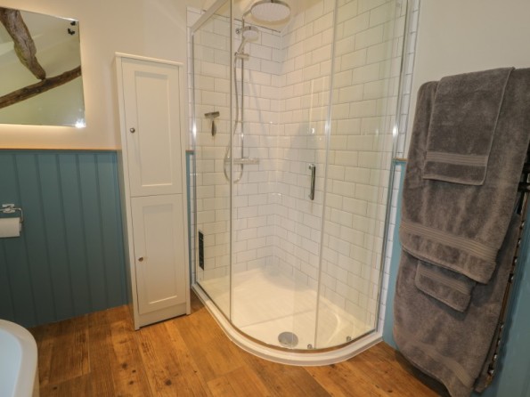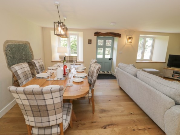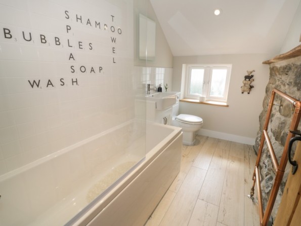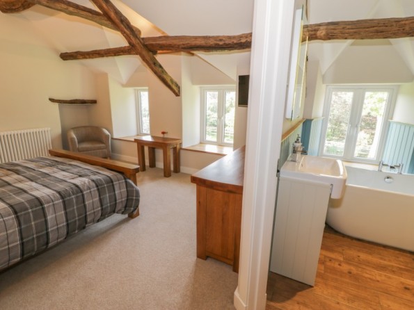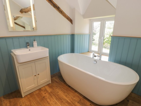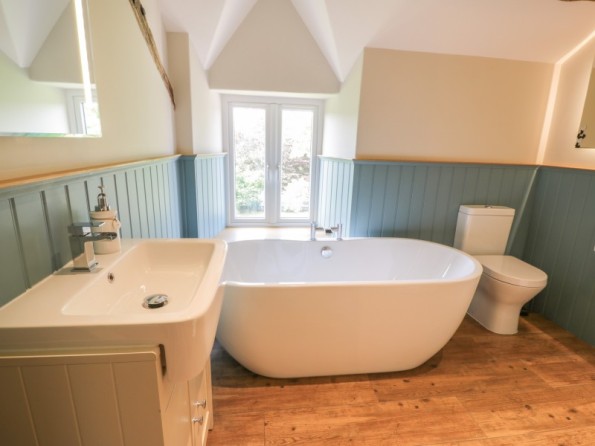 Over two floors. Three bedrooms: 1 x king-size with Smart TV and en-suite freestanding bath, walk-in shower, basin and WC, 1 x king-size with Smart TV and en-suite shower, basin and WC, 1 x twin with Smart TV. Bathroom with bath, shower over, basin and WC. Cloakroom with basin and WC. Kitchen. Utility. Sitting room with woodburning stove and dining area.