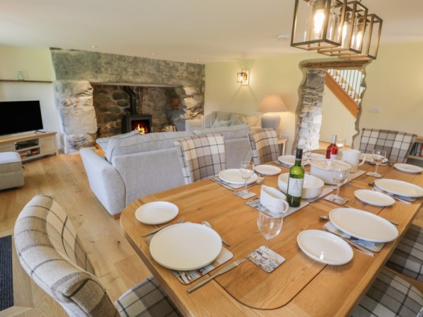 Tyn Ffynnon is a wonderful detached stone cottage resting in the small village of Dyffryn Ardudwy in Wales, within the Snowdonia National Park and near the beach. Hosting three bedrooms, including a king-size with an en-suite bathroom, a king-size with an en-suite shower room and a twin bedroom, all with Smart TVs, along with a bathroom and a cloakroom, this property can sleep up to six guests. There is also a kitchen, a utility room, and a living room/diner with a woodburning stove. Outside there is a large enclosed rear garden with a lawn, patio and seating and off-road parking is available for four cars. Tyn Ffynnon is a beautiful property in a great location for enjoying the countryside and coast in Wales.