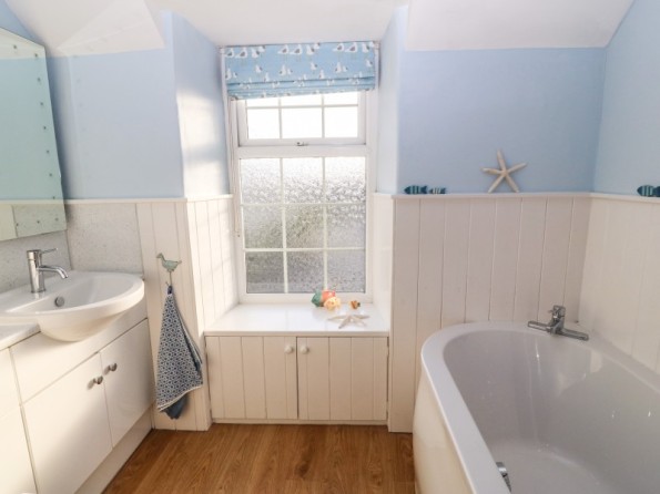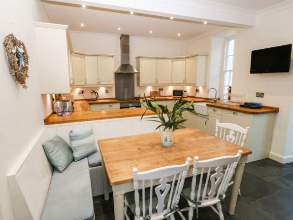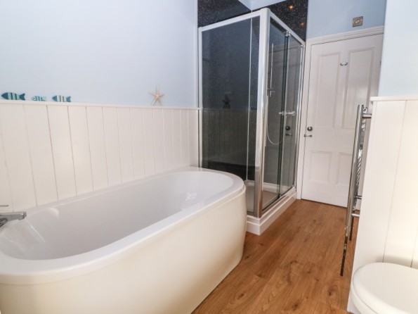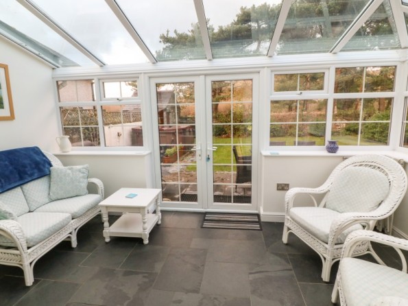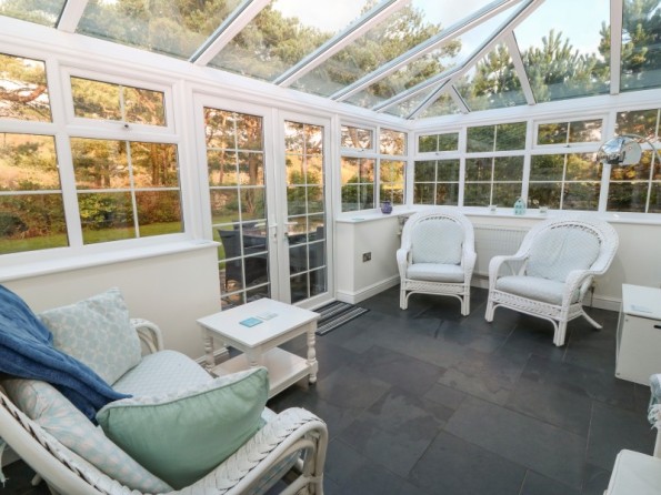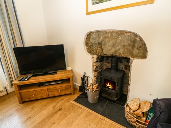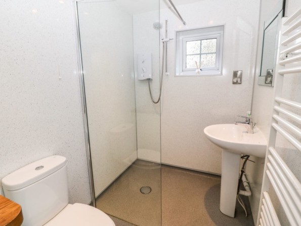 Three bedrooms: 1 x king-size double with TV, 1 x double, 1 x twin. Bathroom with bath, double shower, basin and WC. Ground floor wet room with walk-in shower, basin and WC. Kitchen with dining area and woodburner. Utility. Sitting room with woodburner. Conservatory.