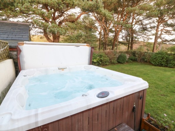 Delightful, seaside cottage in Morfa Bychan. Enviable location, backing onto links golf course, boasting superb hot tub, two woodburners and underfloor heating. Beach 10 mins walk.