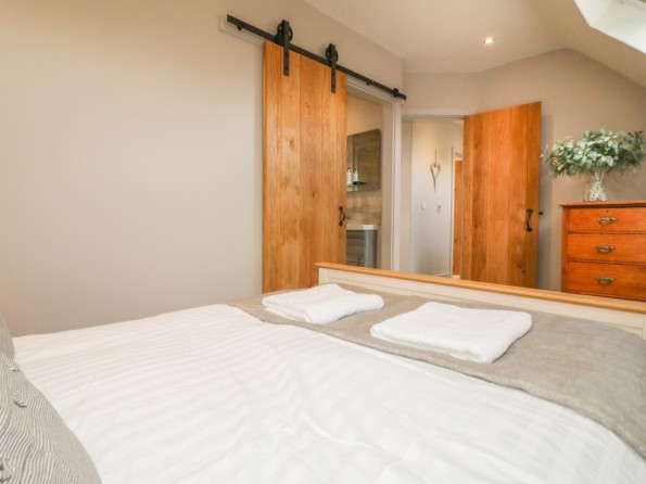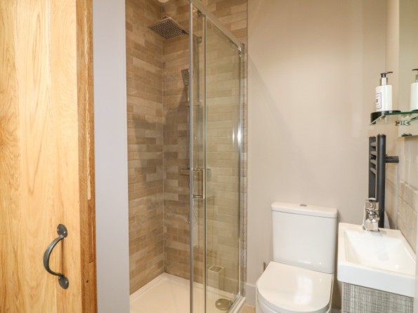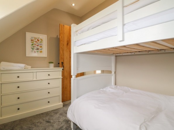 Four bedrooms: 1 x king-size with en-suite shower, basin, heated towel rail and WC, 1 x double with en-suite shower, basin, heated towel rail and WC, 1 x double, 1 x adult bunk room. Bathroom with bath, shower over, basin, heated towel rail and WC. Cloakroom with basin and WC with washing machine. Open-plan living space with kitchen, dining area and sitting area with multi-fuel stove. External utility with cloakroom