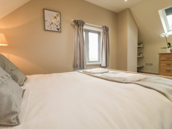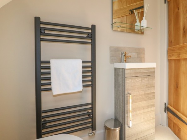 Upper Barn is a beautiful renovated barn conversion situated in the hamlet of Drointon, Staffordshire. Hosting four bedrooms including a king-size with en-suite shower room, a double with en-suite shower room, a double and an adult bunk room, along with a family bathroom, and two cloakrooms, this property can sleep up to eight guests. There is an open-plan living space with a kitchen, dining area and sitting area with a multi-fuel stove, and an external utility room. To the outside there is an enclosed rear garden with lawn, patio, seating and a sheltered table tennis area, while there is off-road parking for six cars at the front of the property. Upper Barn is a stunning property ideal for rural family holiday in Staffordshire.