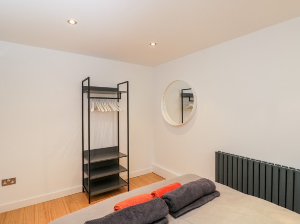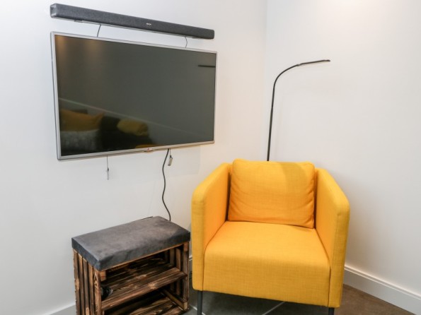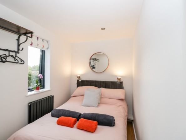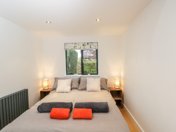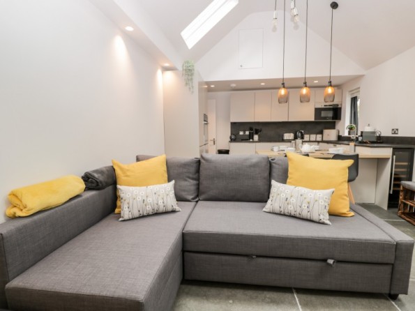 Ground-floor with mezzanine seating area. Two bedrooms: 1 x king-size, 1 x double. Sofa bed in sitting room, bedding available on request. Bathroom with walk-in shower, basin, WC and washing machine. Open-plan living with kitchen, dining area and sitting area. Utility cupboard