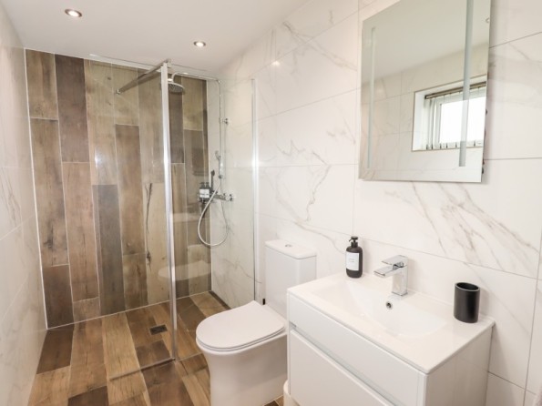 All-ground-floor. One super-king-size bedroom with TV (zip/link, can be twin upon request). Wet room with walk-in shower, basin and WC. Open-plan living space with kitchen, dining area and sitting area with sofa bed