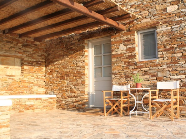 Verandas and terraces of 300sqm extend around the villa. The main veranda offers seating and dining facilities as well as a long stone built-in bench which reaches out to the barbeque and the studio bedroom has its own veranda and seating. Views of the blue Aegean Sea stretch all around you.