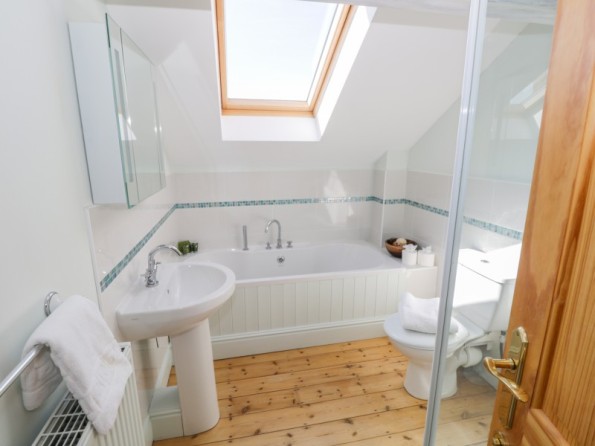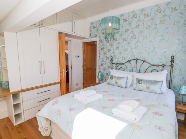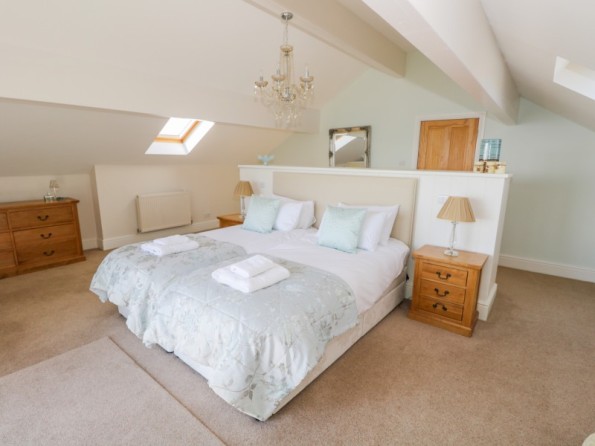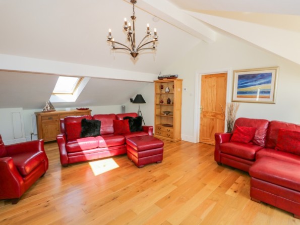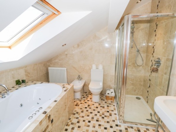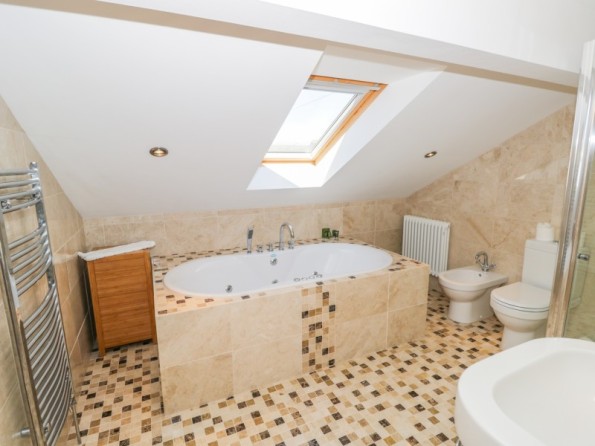 Five bedrooms; 1 x king-size double with an en-suite Jacuzzi bath, separate walk-in shower, bidet, basin and WC, 1 x king-size, 1 x ground-floor double, 1 x superking (set up as a twin) with en-suite with bath, separate walk-in shower, basin and WC, 1 x twin. Bathroom with shower over bath, basin and WC. Ground-floor shower room with walk-in shower, basin and WC. Open-plan living room with kitchen, dining area and sitting area. Sitting room with open fire. First-floor sitting room. Utility.