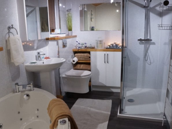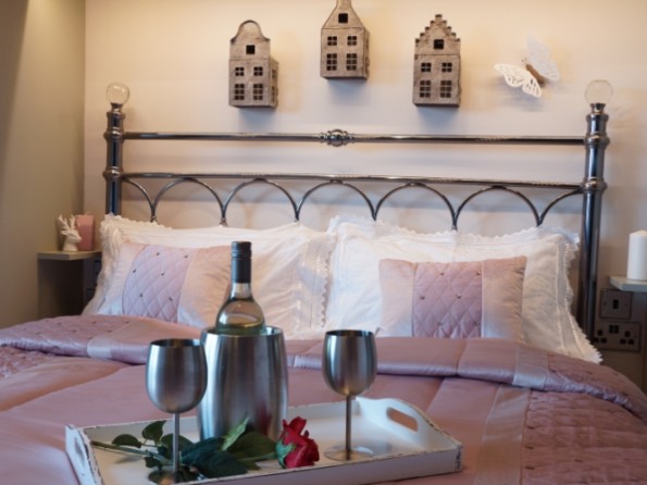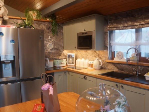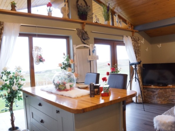 The lodge has floor to ceiling windows, allowing you to make the most of the dramatic sea views. There’s a spotting scope in the window where you can look out for dolphins or watch the passing cruise liners. The bedroom has a king size bed and flat screen TV. There’s a comfortable living area with cosy seating, large screen TV, blu ray player, PS4 and a selection of DVDs. Free wifi throughout. The fully fitted kitchen is well equipped with all the utensils, appliances and mod cons. The bathroom has a spa bath and a double shower. Towels, bedding, bathrobes, toiletries and a welcome basket are all included (and additional ‘romantic’ extras of champagne and chocolates can be added on request). The lodge has a rear entrance with an additional toilet, as well as the washing machine and tumble dryer.