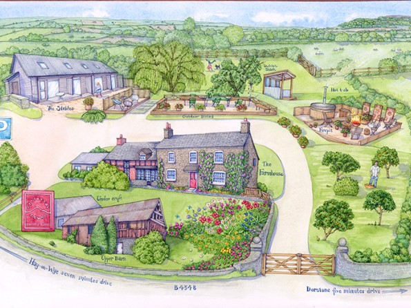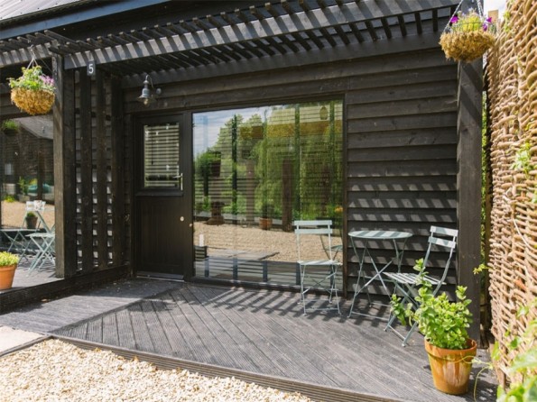 The house it set within 5 acres of grounds which comprise a landscaped seating area with BBQ and wonderful views, a cedar-clad hot tub, a rustic red brick ‘games’ barn, an ‘outback shack’ under ancient mulberry trees, a children’s play area and two huge private fields which you can use however you please.