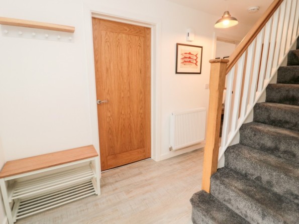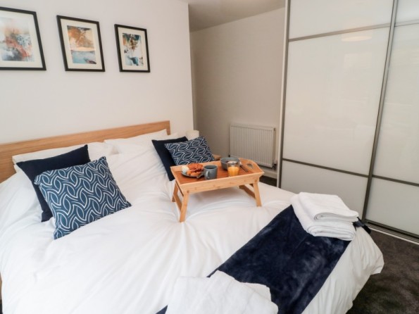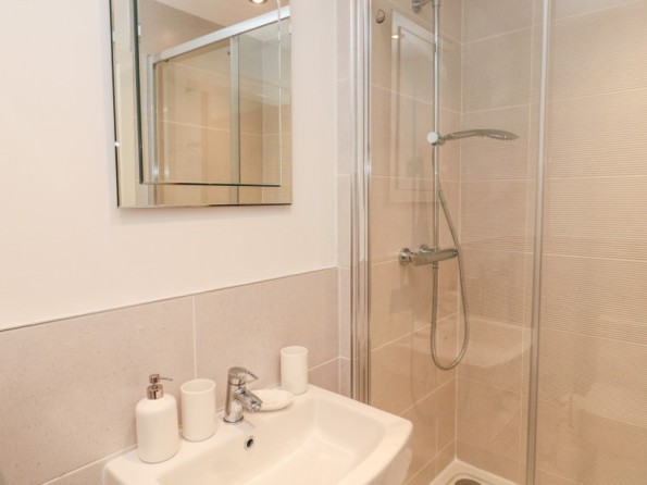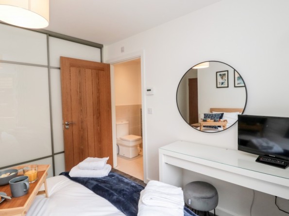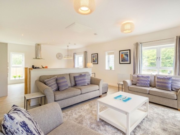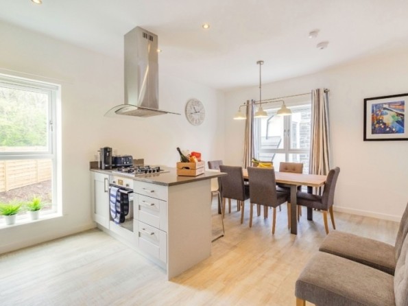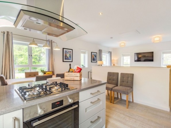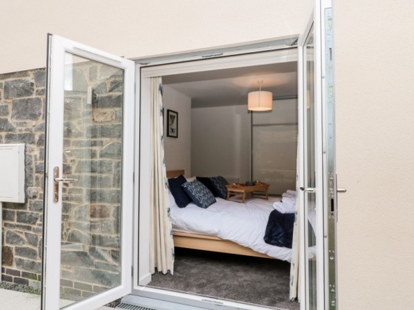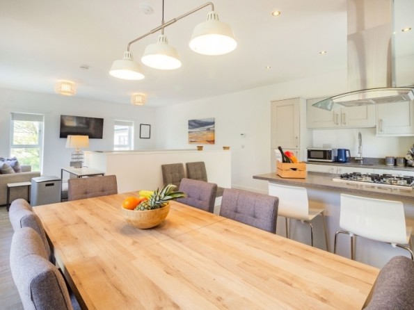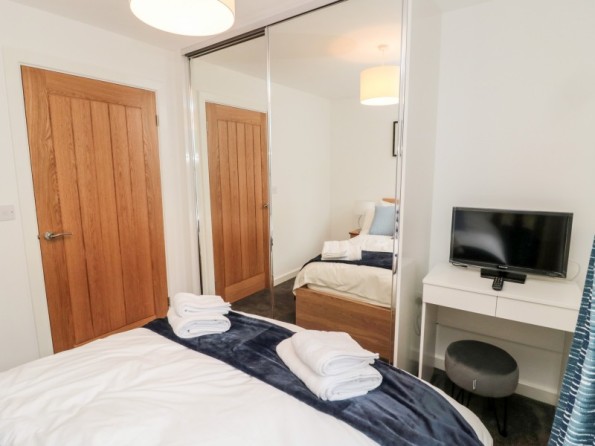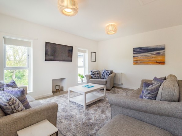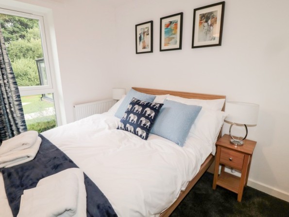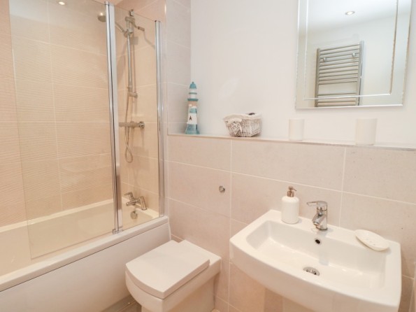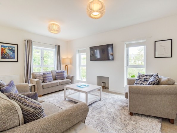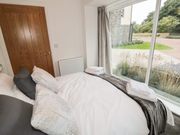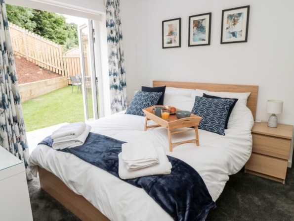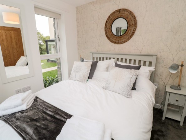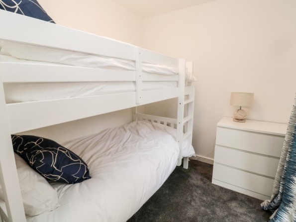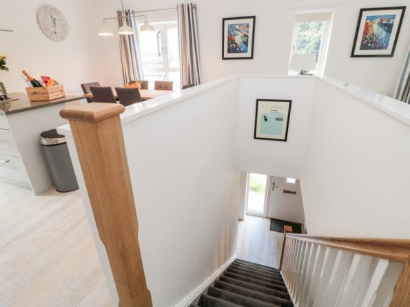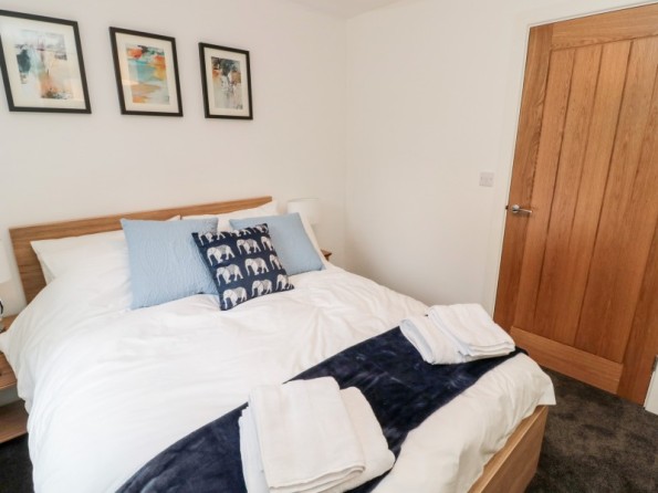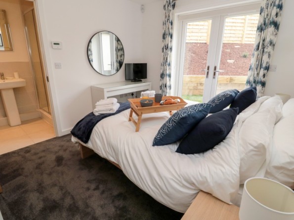 Reverse-level. Four bedrooms: Ground-floor king-size with TV, en-suite walk-in shower, basin and WC, 2 x ground-floor double (one with TV) , 1 x ground-floor bunk bed. Ground-floor bathroom with bath, shower over, basin, heated towel rail and WC. First-floor open-plan living space with kitchen, dining area and sitting area. Baby friendly