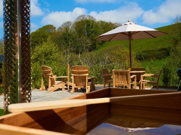 Outside you’ll find a private terrace, complete with BBQ, loungers, dining table and chairs, a fire pit, a hammock, and a wood fired hot tub. There is a communal games barn which has a table tennis table, giant chess and table football.There is ample on site parking. The car park has a boot and dog wash area.
