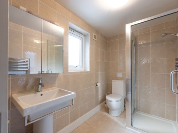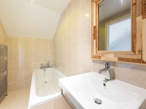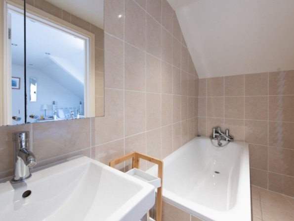 Situated on the first floor this room is the en-suite to Bedroom Two and features a full size bath with shower attachment, WC, sink, mirror, heated towel rail and shaving point
