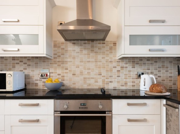 A range of crockery, cutlery and cooking utensils are provided as well as a cafetiere and smaller appliances that include a toaster, kettle, iron, ironing board and vacuum cleaner