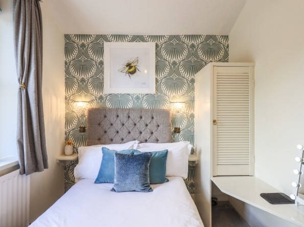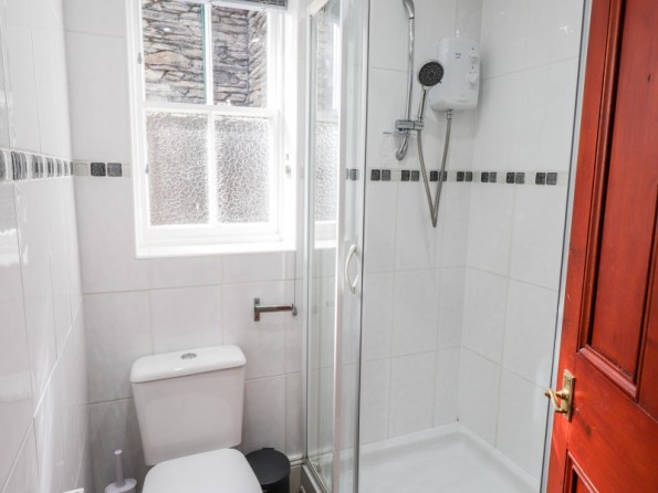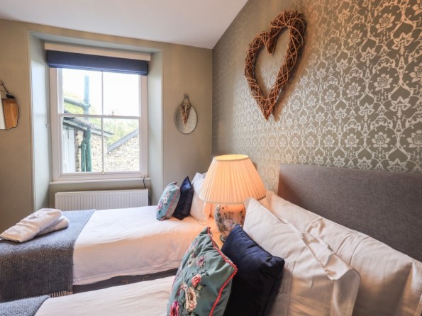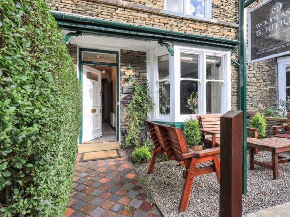 Woodland Boutique is a mid-terrace cottage nestled in the heart of Windermere, Cumbria. Hosting four bedrooms across four floors, this property can sleep up to four guests. On the first floor there is a king-size with Smart TV and en-suite bath, a double with Smart TV and en-suite shower, a twin with Smart TV and a shower room. On the second floor there is a double with Smart TV and en-suite shower. On the ground floor there is an open plan living space with kitchen, dining and living space with woodburning stove, while in the basement there is a cinema room. To the outside is gravelled garden with bench and roadside parking is available. Note: Children over 10 years old only.