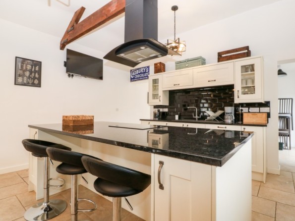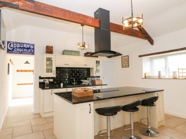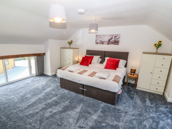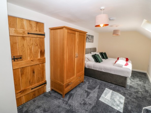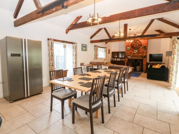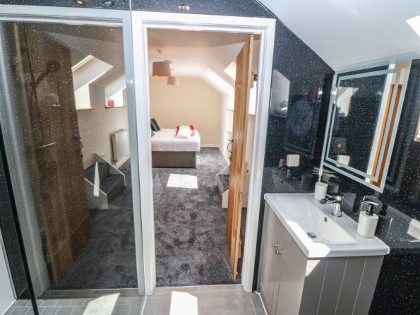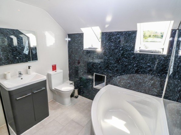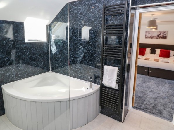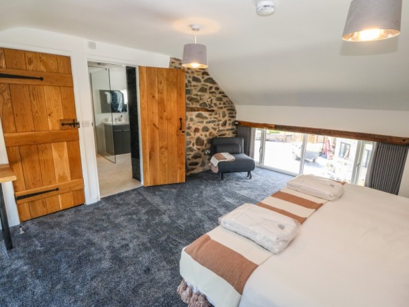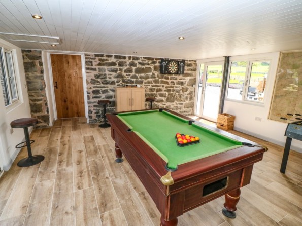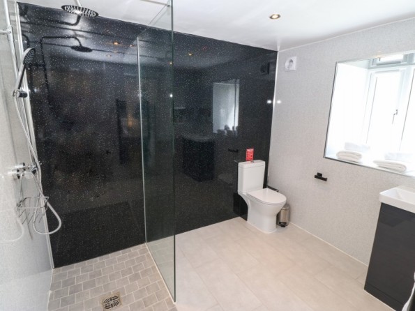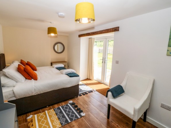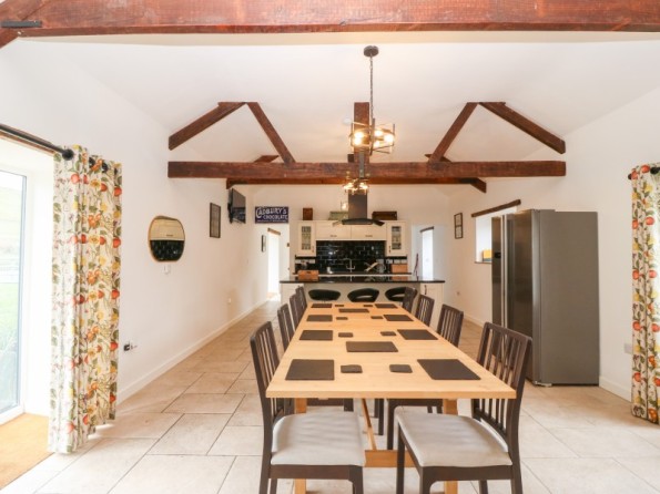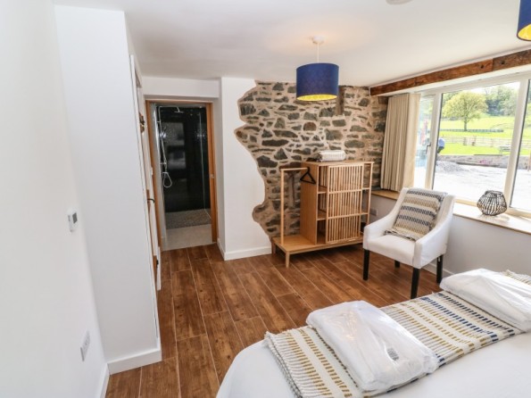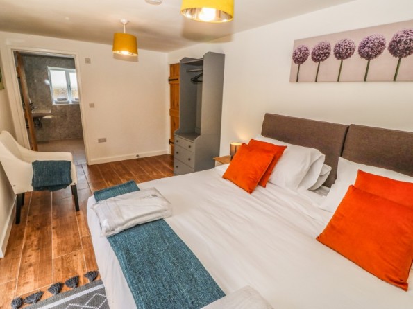 Y Beudy is an exceptional property resting in Pedairffordd near Llanrhaeadr-Ym-Mochnant, Wales. It comes with four bedrooms, comprising of two ground-floor king-size (zip/link can be twins on request) with en-suite walk-in shower, basin, heated towel rail and WC, a king-size (zip/link can be twins on request) with en-suite bath, walk-in shower, basin, heated towel rail and WC and a king-size (zip/link can be twins on request) with en-suite walk-in shower, basin, heated towel rail and W, together sleeping up to eight people. Concluding the interior is an open-plan living room with kitchen, dining area and sitting area with woodburning stove, as well as a utility and a communal games. Outside, there is a private enclosed garden with lawn, patio area with table, chairs and hot tub, and a communal garden complete with picnic bench seating, barbecue and children’s play area. Y Beudy is an outstanding property to enjoy this part of North Wales.