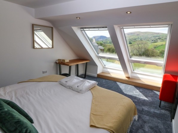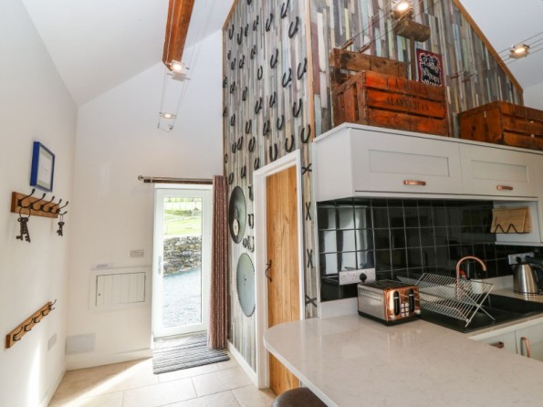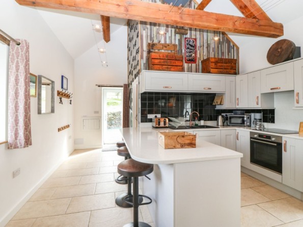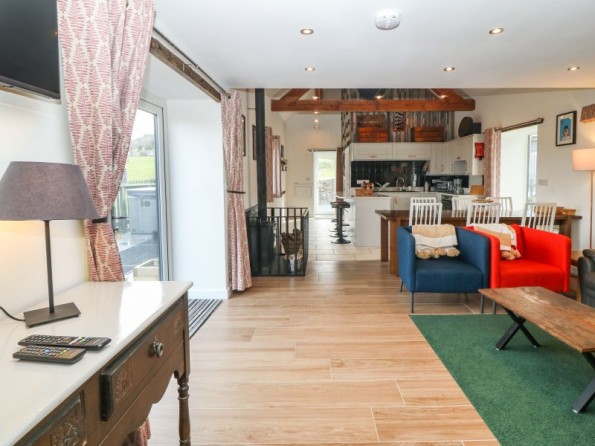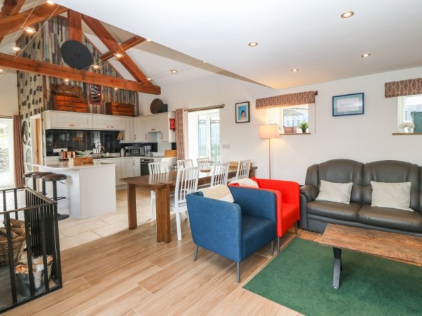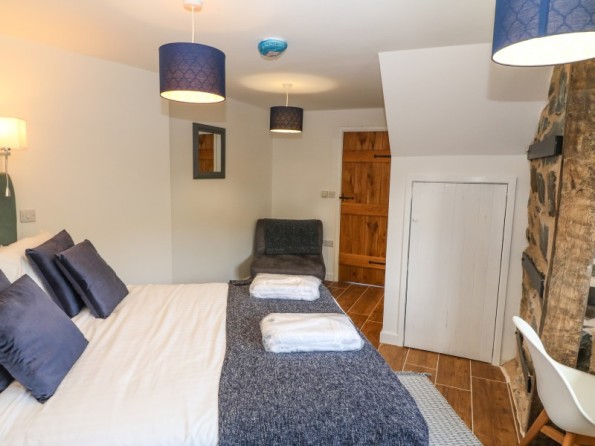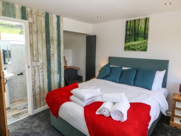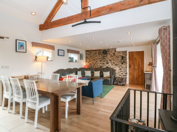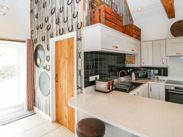 The Granary is a barn conversion resting in Pedairffordd near Llanrhaeadr-Ym-Mochnant in Powys. Hosting three bedrooms with zip/link features; a super-king-size with an en-suite bathroom, a king-size with an en-suite shower room, and a king-size with an en-suite wet room, along with a cloakroom, this property can sleep up to six guests. There is an open-plan living space with kitchen, dining area and sitting area with woodburning stove, and a snug. To the outside, there is decking with dining seating and hot tub, an enclosed rear garden with Astro-turf, and a communal games room with pool table, table football and darts, as well as communal garden complete with picnic bench seating, barbecue and children’s play area, whilst ample off-road parking is available. The Granary is a beautiful barn conversion set in idyllic countryside.
